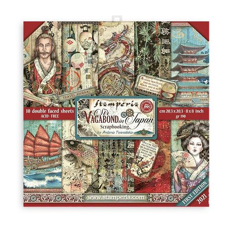 Stamperia Double-Sided Scrapbooking Paper Set - Sir Vagabond in Japan, 10 units