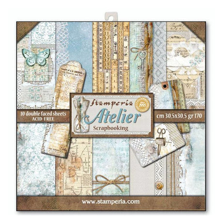 Stamperia Double-Sided Scrapbooking Paper Set - Atelier, 10 units