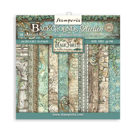 Stamperia Double-Sided Scrapbooking Paper Set - Magic Forest, Backgrounds Selection, 10 units