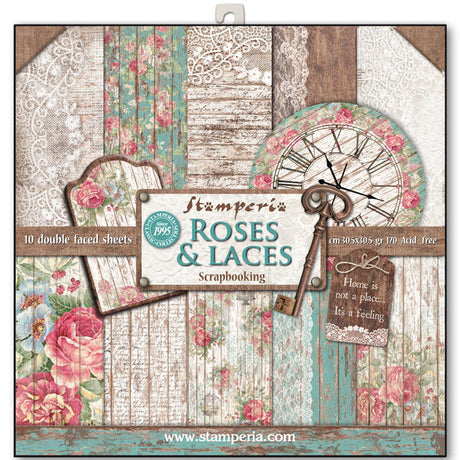 Stamperia Double-Sided Scrapbooking Paper Set - Roses & Laces, 10 units