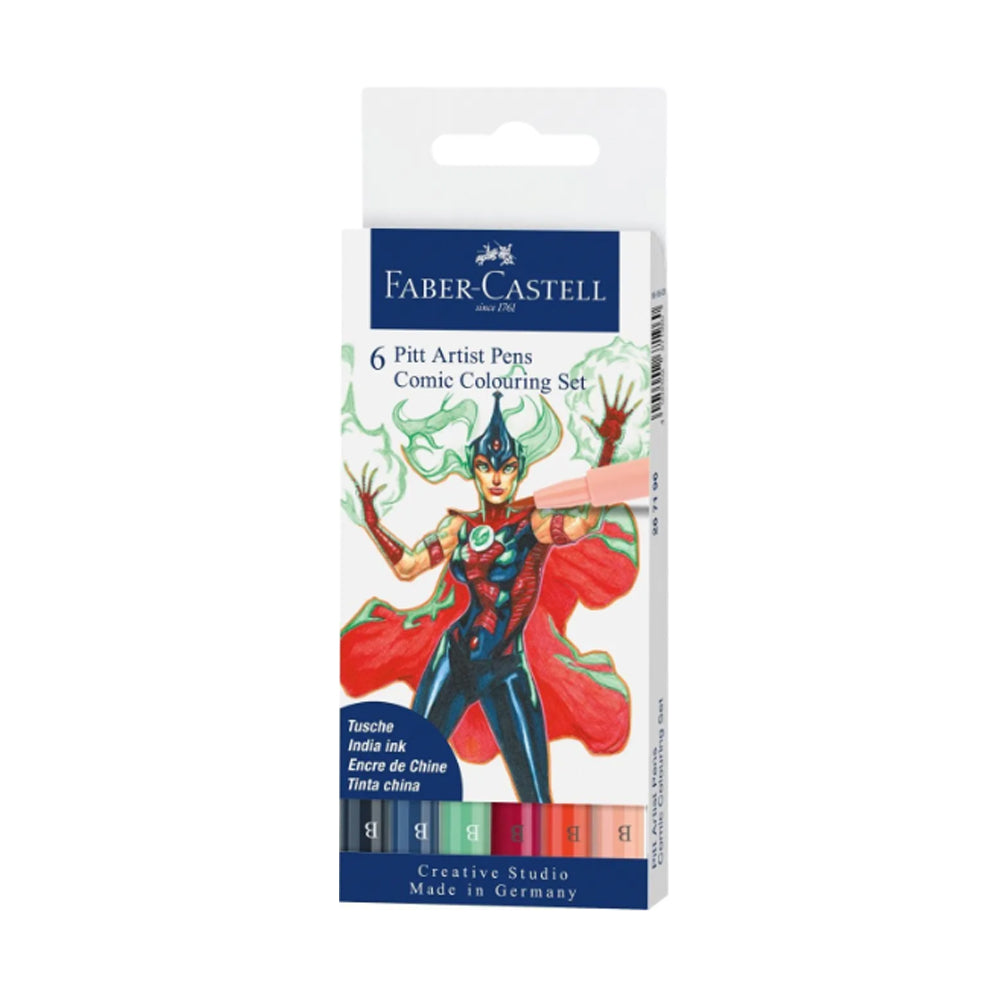 Faber-Castell Pitt Artist India Ink Brush Pen Set, 6 pcs., Comic Colouring