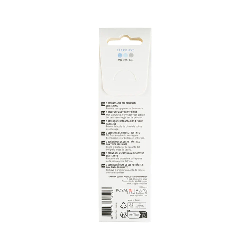 Sakura Gelly Roll Stardust Gel Pens Set, 3 pcs., Blue, Sky Blue, Silver is backordered and will ship as soon as it is back in stock.