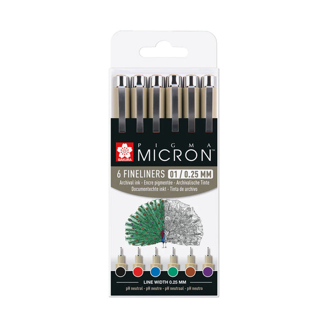 - Set of 6 coloured Pigma Micron 01 0.25 mm fineliners;