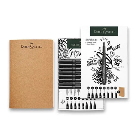 Faber-Castell Pitt Artist India Ink Pen Fineliners Set, 8 pcs. + Sketchbook