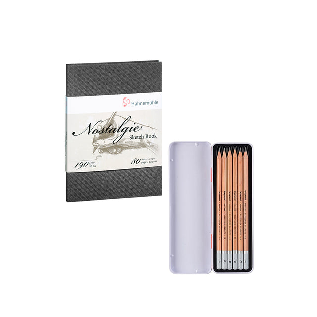 - Set of 6 Bruynzeel Expression graphite pencils and 1 Hahnemühle Nostalgie sketchbook;